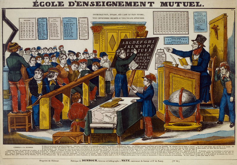 Une salle de classe pendant l’instruction. L’Alphabet, Gravure XIXe siècle, Metz
